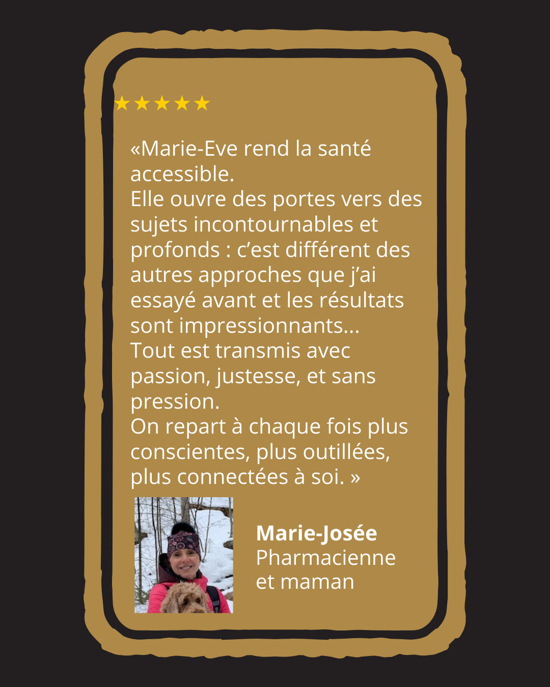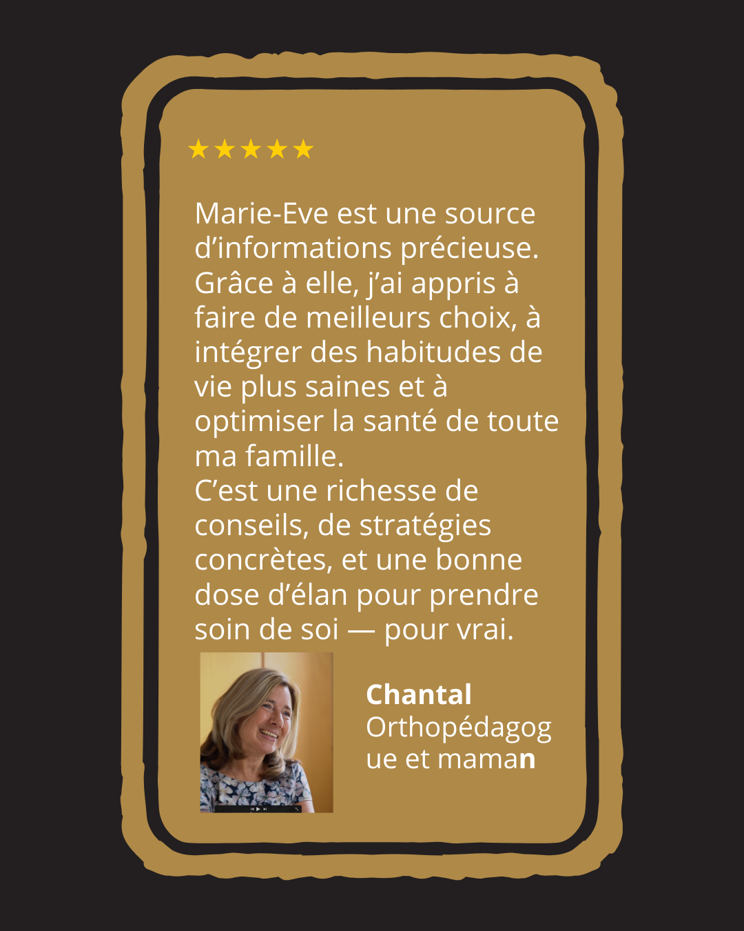 Salut, je suis Marie-Eve, Coach Santé & Docteure en chiropratique depuis 15 ans.