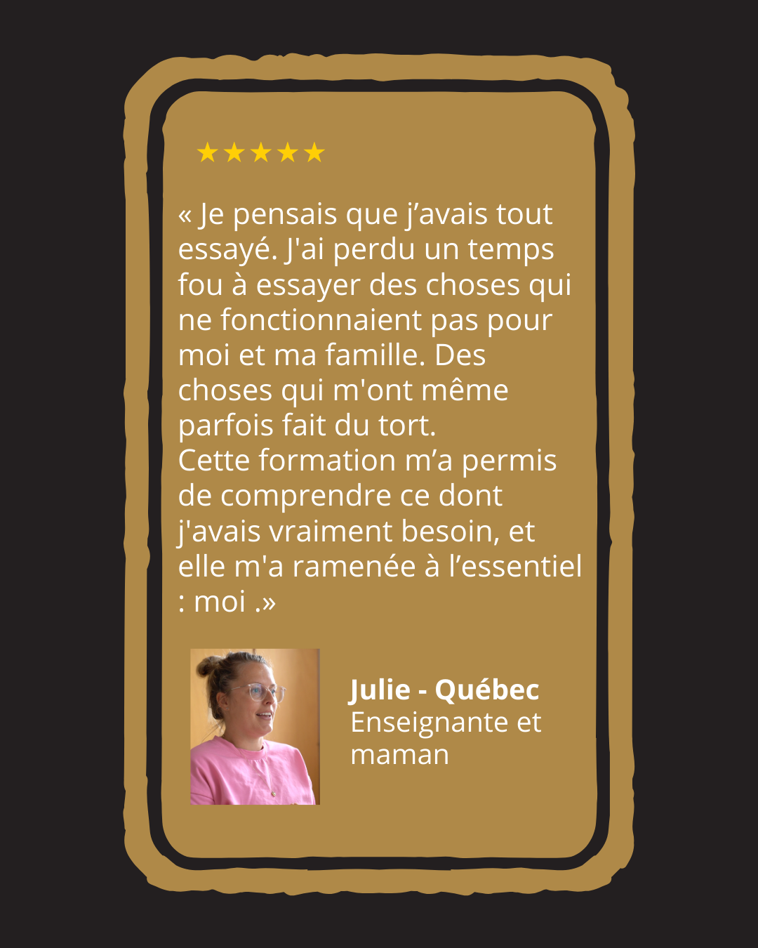 Tu ne fais pas qu’apprendre de la théorie. Tu reprends confiance, tu te reconnectes avec tes besoins, tu trouves le plaisir de vivre.